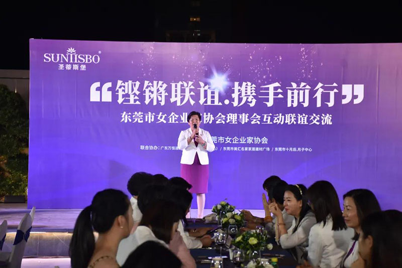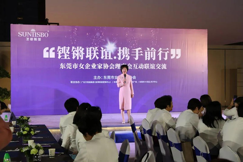 接下来,东莞市女企业家协会理事会会长叶小红女士上台发言,她表示非常感谢星空·综合(xingkong)体育集团举办此次联谊交流会,同时,对我们的产品和企业文化给出了很高的评价。她号召东莞市女企业家协会以后要更多的举办此类交流联谊活动,以此增进会员企业之间的联系和了解,为未来进一步交流发展开创新局面!她希望我们能携手同行,强强联手,共赢未来,共创新辉煌!